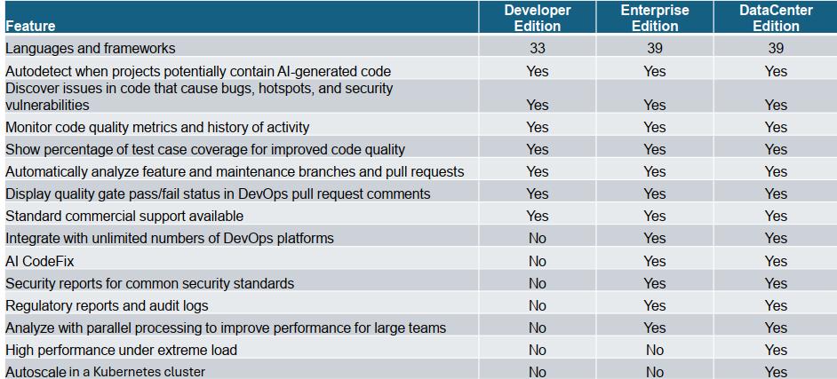 • Số lượng người dùng: Tổ chức có thể có 50 hoặc 5.000 nhà phát triển sử dụng SonarQube mà không mất thêm chi phí.
